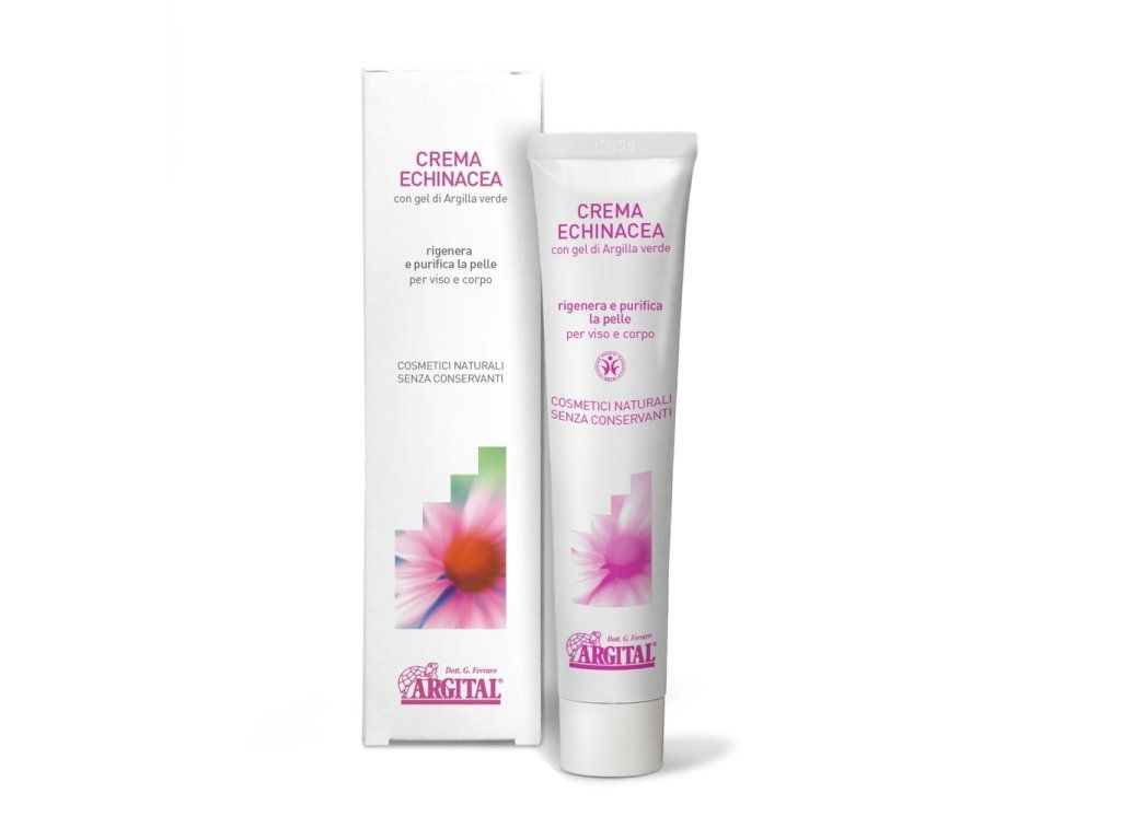 Krém s echinaceou od Argitalu pomáhá zklidnit a pročistit pleť s akné, růžovkou nebo jinými projevy nerovnováhy. Bylinné extrakty z echinacey, měsíčku a řebříčku v kombinaci s esenciálními oleji a zeleným jílem čistí, hojí a osvěžují. Mandlový olej pak dodává výživu a hebkost.